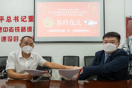 12月14日,昆明理工大学老挝苏发努冯大学孔子学院与中老铁路琅勃拉邦维保管理中心在中老铁路老挝琅勃拉邦站举行设立中文教学点及中文服务平台合作签约仪式。