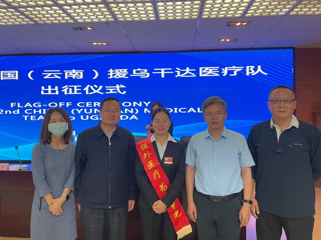 6月8日上午,云南省承派的第22批中国(云南)援乌干达医疗队出征仪式在昆明举行,昆明理工大学作为派员单位,选派了城市学院教师柴家佳参加此批援外医疗队,承担英语翻译工作。昆明理工大学副校级领导吴涛,对外合作交流处、城市学院相关负责人参加出征仪式。