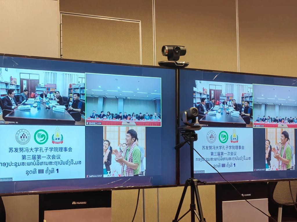 1月24日,中国昆明理工大学与老挝苏发努冯大学在“云端”联合召开老挝苏发努冯大学孔子学院第三届第一次理事会。昆明理工大学校长王华、苏发努冯大学校长维赛?占萨旺(Vixay CHANSAVANG)出席会议。会议由昆明理工大学副校长、孔子学院中方理事易健宏主持。
