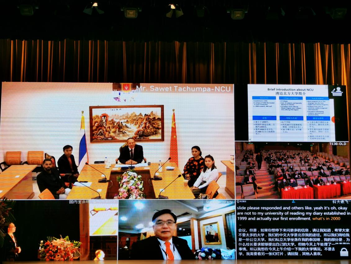 南开大学、西安交通大学、西南交通大学、北京工业大学、江西财经大学、湖南农业大学、贵州师范学院、三亚学院、桂林旅游学院和泰国前五国立名校招考中心代表等均作了现场交流发言。泰国华侨崇圣大学和泰国先皇理工大学代表也作了线上交流。