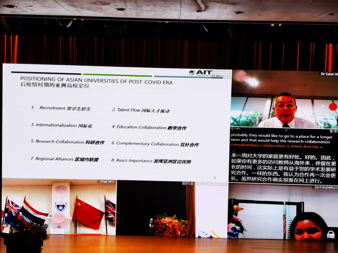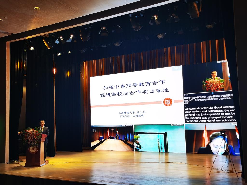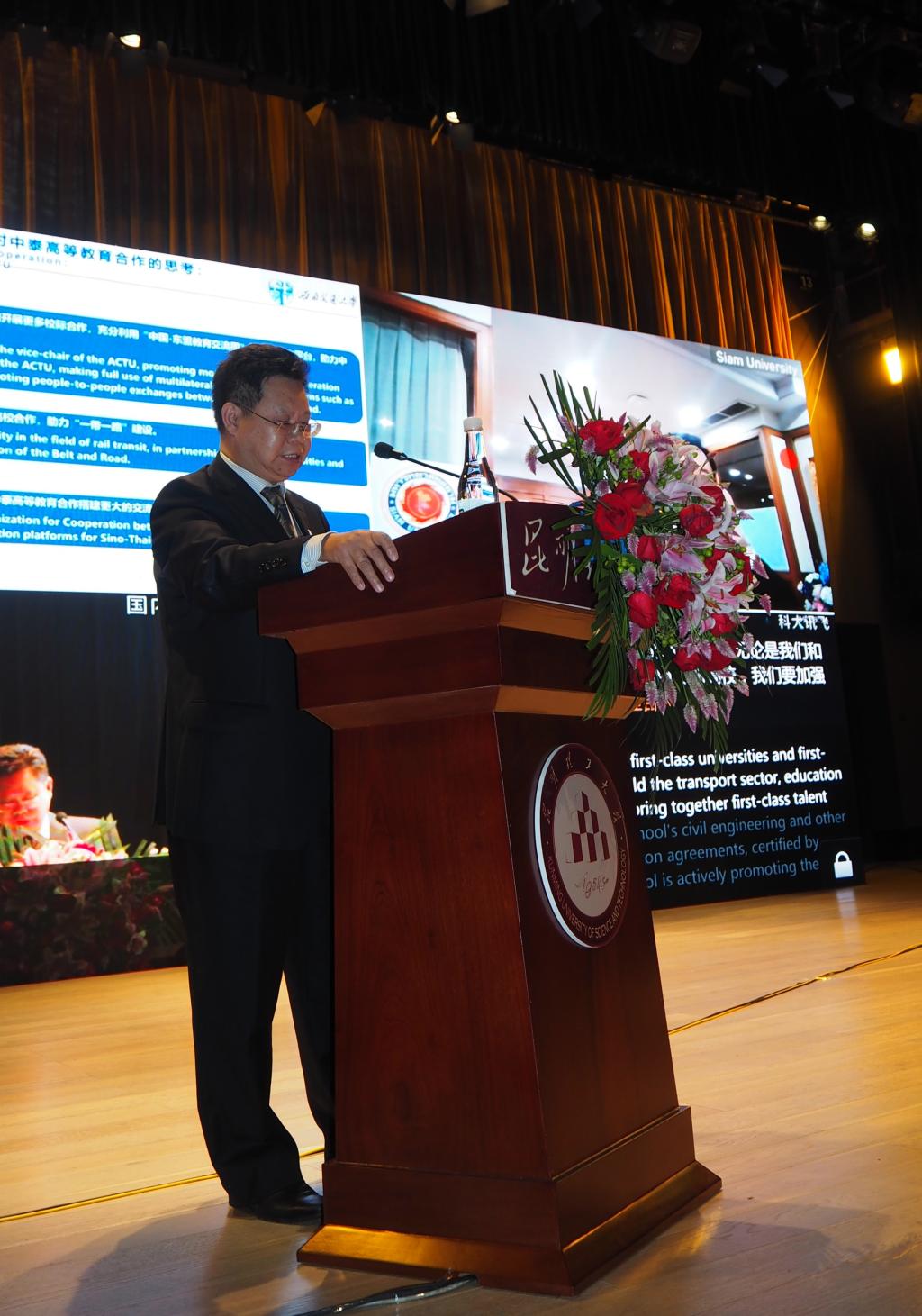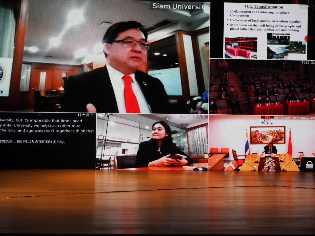 论坛上,西南交通大学姚发明副校长作了题为《对标世界一流教育国际合作的实践与加强中泰教育交流的思考》,对中泰高等教育合作联盟今后的建设进行了展望。亚洲理工学院校长翁以登博士(线上)在题为《后疫情时代亚洲高校的挑战与机遇》的报告中,从留学生招生、国际人才流动、国际化、教学合作、科研合作、互补合作、区域内联盟和发挥亚洲区位优势八个方面,探讨了后疫情时期亚洲高校的定位。清迈大学罗姆·齐拉努克洛穆副校长(线上)以《澜沧江-湄公河职业教育的未来愿景》为题,强调当前特别是近期新冠疫情下两国开展电子商务产业项目合作,促进中泰两国的文化交流和经贸往来。扬州大学刘巧泉副校长通过题为《“一带一路”背景下的中泰高等教育合作》的发言,希望联盟引领,院校参与,双向互动,打造项目研究共同体,使中泰高等教育合作提质增效。泰国北清迈大学那隆·查瓦信校长(线上)和中国东西方国际教育研究院院长及东西方国际教育集团王伟董事长在联合报告中指出,希望以联盟为平台,创新课程合作模式,推动中泰双向留学。泰国暹罗大学蓬猜·蒙空瓦尼校长和合艾大学伟塔瓦·迪亚萨林·萨达亚拉校长也分别作了题为《高等教育向可持续发展转型》和《通过国际合作实现中国和泰国高等教育的变革》的线上发言。