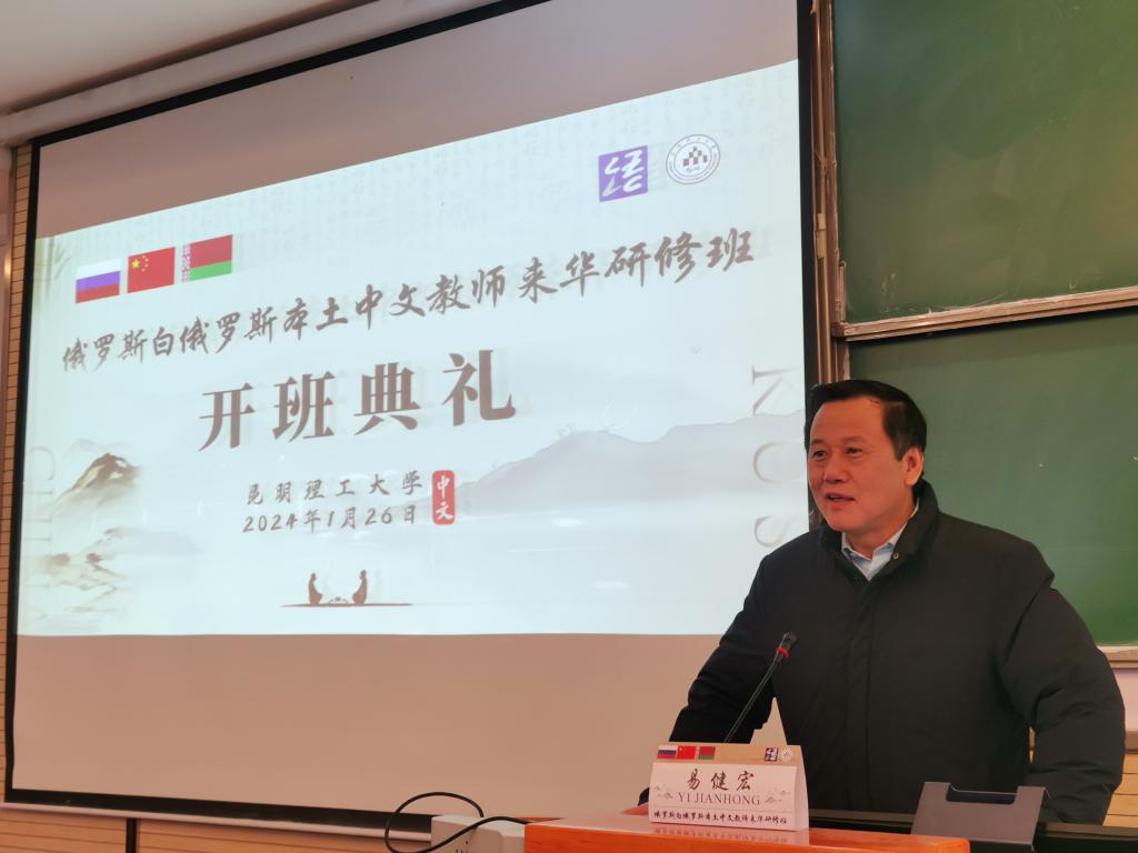 1月26日上午,由中外语言交流合作中心主办、昆明理工大学承办的俄罗斯白俄罗斯本土中文教师来华研修班在昆明理工大学莲华校区举行开班典礼,29位来自俄罗斯、白俄罗斯本土中文教师参加本次研修项目。校党委常委、副校长易健宏出席开班典礼。