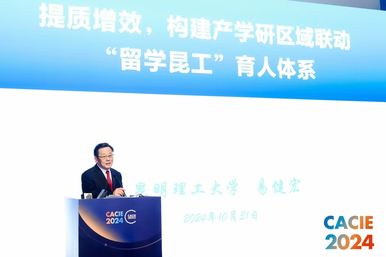 10月31日,第25届中国国际教育年会暨中国国际教育展在北京国家会议中心召开,在平行论坛“重塑升级、多元发展——面向未来的来华留学教育对话”上,中国教育国际交流协会举行了来华留学生高等教育质量认证项目颁证仪式。中国教育国际交流协会会长刘利民为初次认证通过高校颁发证书,昆明理工大学党委常委、副校长易健宏受邀出席会议并代表学校接受证书。会上易健宏以“提质增效,构建产学研区域联动‘留学昆工’育人体系”做主旨报告,他阐述了“留学昆工”围绕辐射中心建设形成的区域特色、学科特色、模式特色联动的育人体系,并从学校办学历程与现状、成效与举措、思考与愿景等方面分享了昆明理工大学在国际化办学方面的成果和经验。昆明理工大学是此次会议中唯一受邀发言的地方院校。